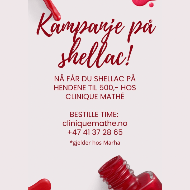 Vi tilbyr shellac og gelénegler - perfekt for deg som ønsker et varig resultat. Enten du går for en naturlig look eller noe kreativt, tilpasser vi behandlingen etter dine ønsker.